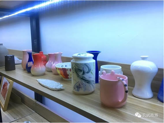 金陵陶社雖然空間不大,但是整個(gè)空間的布局、色調(diào)都充滿著藝術(shù)氛圍,也可以同時(shí)滿足多人做陶藝的需求。走進(jìn)這里,一整面墻都擺放著精致的陶制品,這里的成品、半成品都是老師和體驗(yàn)著親手制作而成。