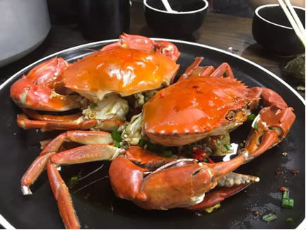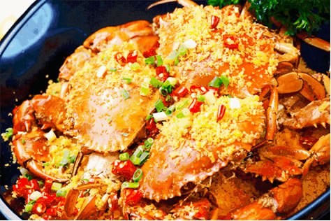 用肉蟹輔以蔥、姜、花椒、干辣椒等爆炒。融合香、辣、鮮、脆四種特點于一體,味道鮮美,營養(yǎng)豐富。